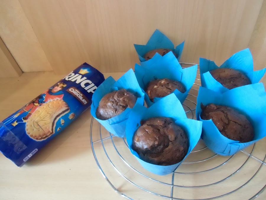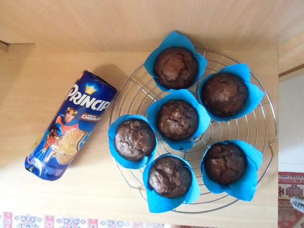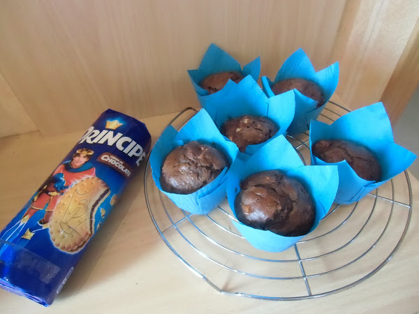 Hoy traigo unos muffins de galletas Príncipe que son una verdadera delicia, el resultado es un bizcocho con un profundo sabor a chocolate y un ligero sabor a galletas. Los muffins los llevé a una quedada en la piscina y a todos mis amigos le gustó.