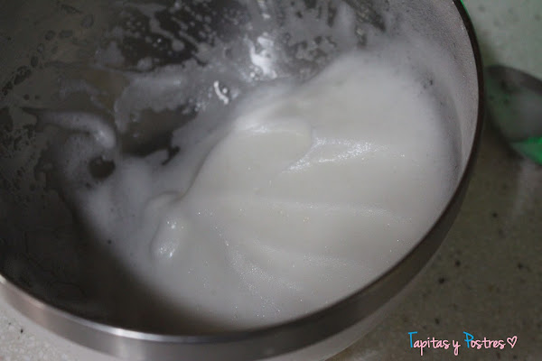 Mientras vamos a montar la clara de huevo con unas varillas.