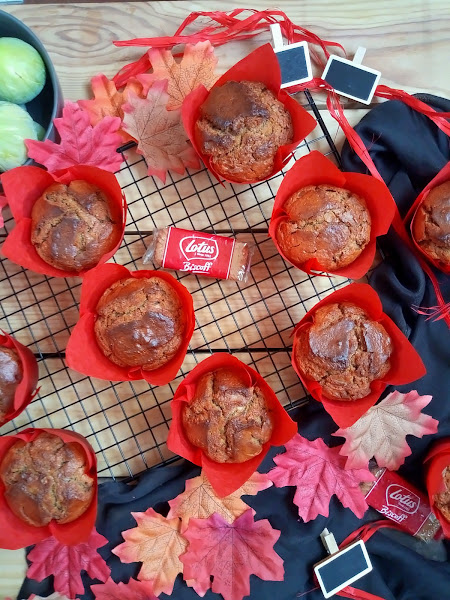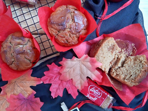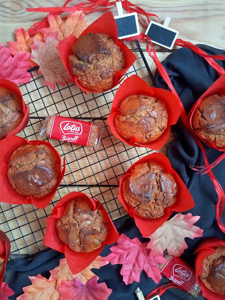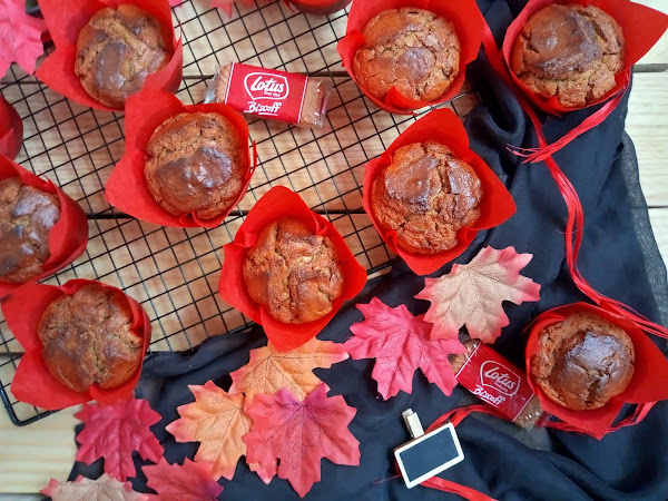El cuerpo me pedía muffins (ya os adelanto que tengo en la "reserva" recetas de muffins para aburrir) y mi mente me recordaba que tenía un par de botes de crema Lotus en el armario. ¿Qué podía salir mal?