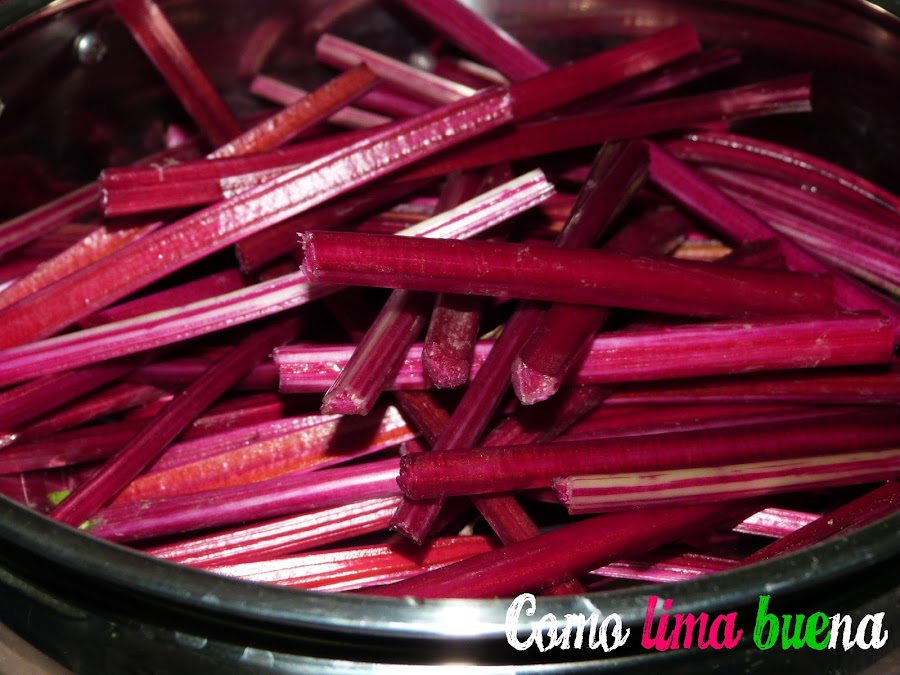 Comenzamos lavando bien la verdura y, en lo posible, la cocinamos al vapor. Primero las pencas (que tardan un poco más) y luego las hojas. Unos 10 minutos para las pencas y unos 5 para las hojas.