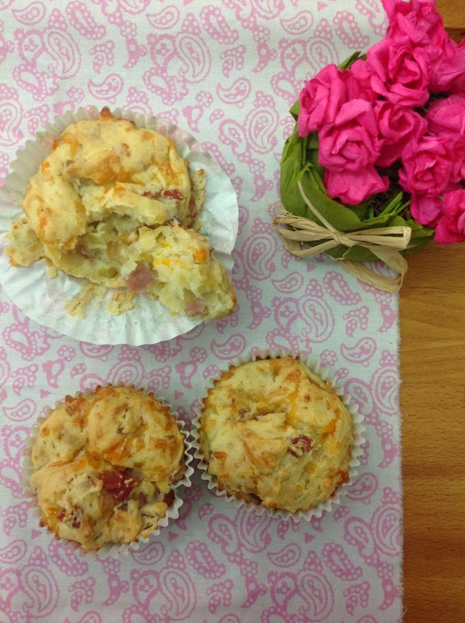 Estos muffins abren nuestra temporada de saladitos de marzo primaveral. Son un estupendo desayuno porque se mantienen blanditos mucho tiempo y si están demasiado fríos para tu gusto, nada más tienes que calentarlos un poco al microondas y los tendrás de nuevo en su punto. También son una receta salada novedosa para cumples. A mis hijos les encantan y se lo comen muy bien. Pueden ser parte de una cena para innovar y dejar un poco de lado las pizzas y los sandwiches. Porque he comido un montón en el almuerzo si no, se me estaría haciendo la boca agua nada más de pensar en ellos.