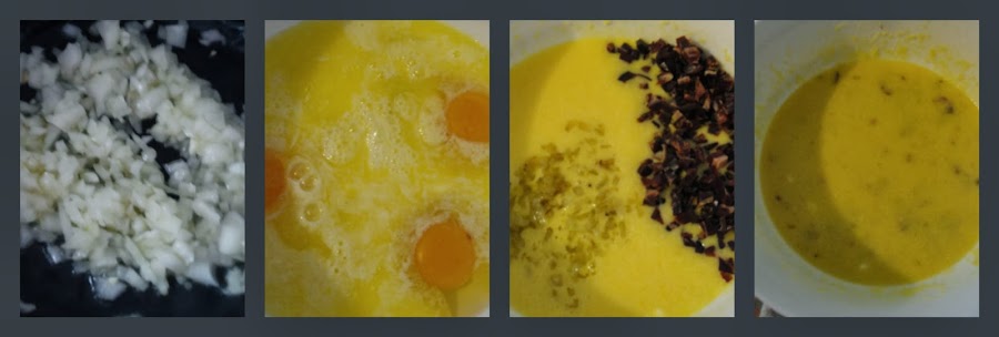 Agregamos el jamón en taquitos y la cebolla dorada, y mezclamos para integrar con el resto de la masa.