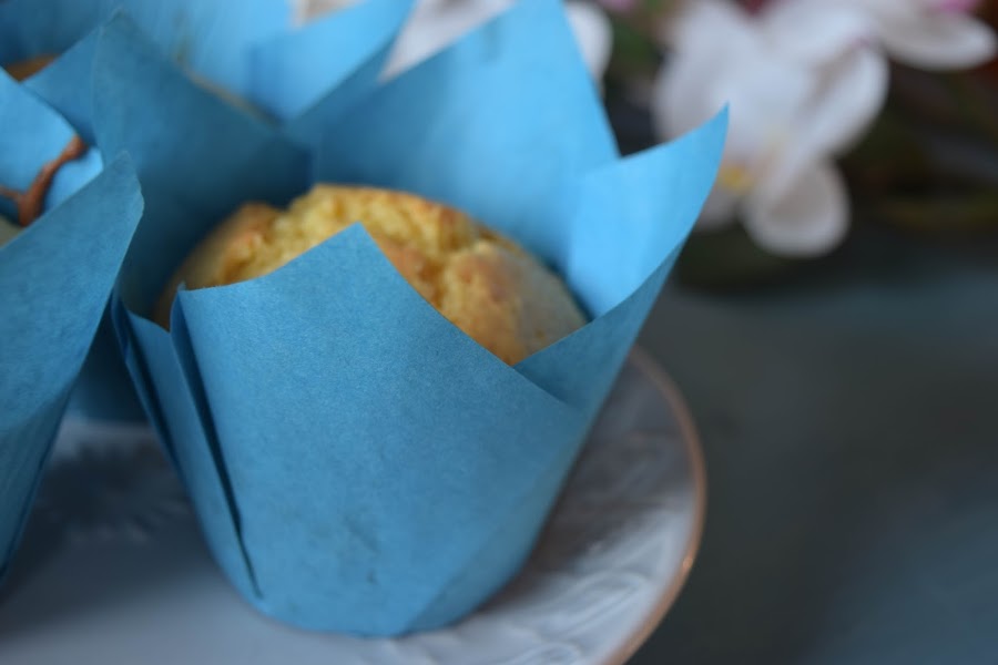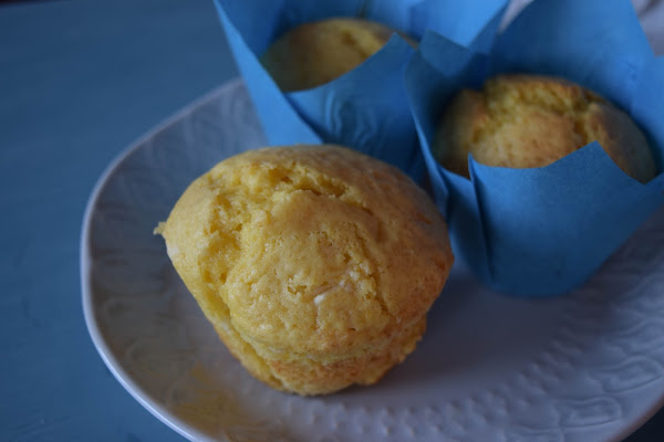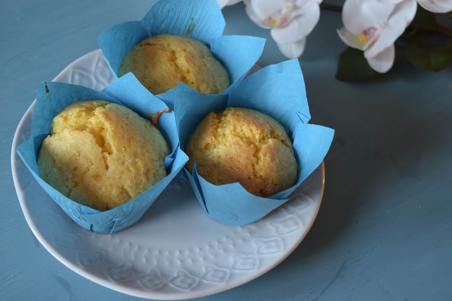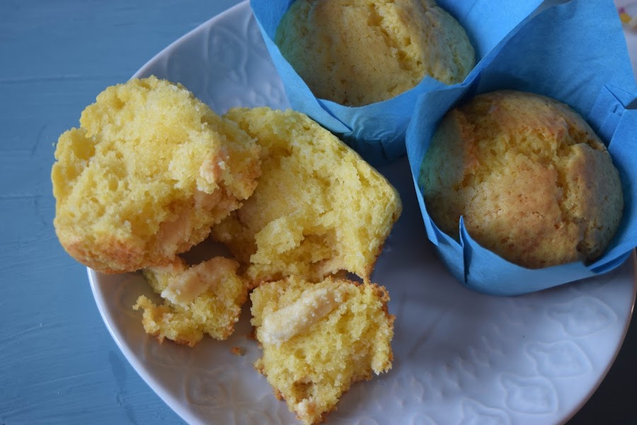 Pensaba que al hornearse se iba a derretir sobretodo porque el chocolate blanco es todo grasa, pero no ha sido así y es de lo más agradable morder un trozo de muffins con el sabor de limón y encontrarte con un tropezón de chocolate. Tanto a mi hermana como a mi nos han encantado. La receta está adaptada de esta.