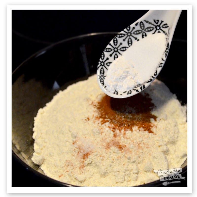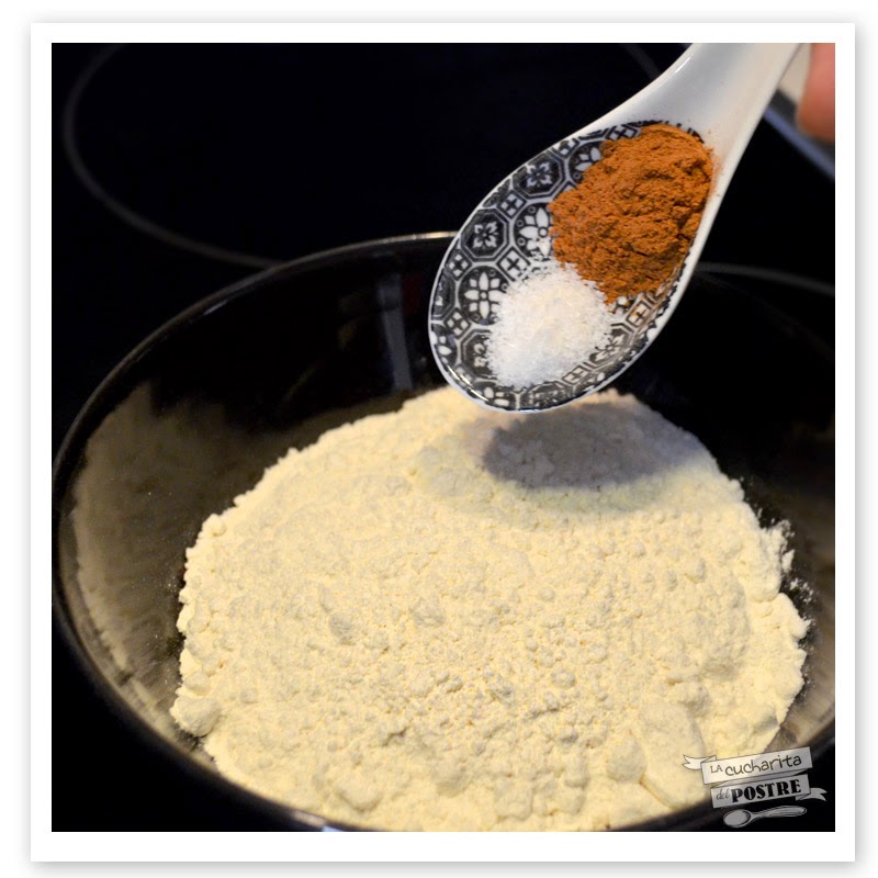 6. Añade la canela, la sal, la levadura y el bicarbonato a la harina.