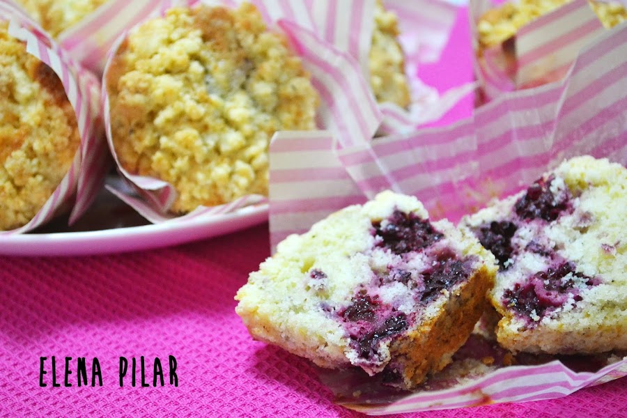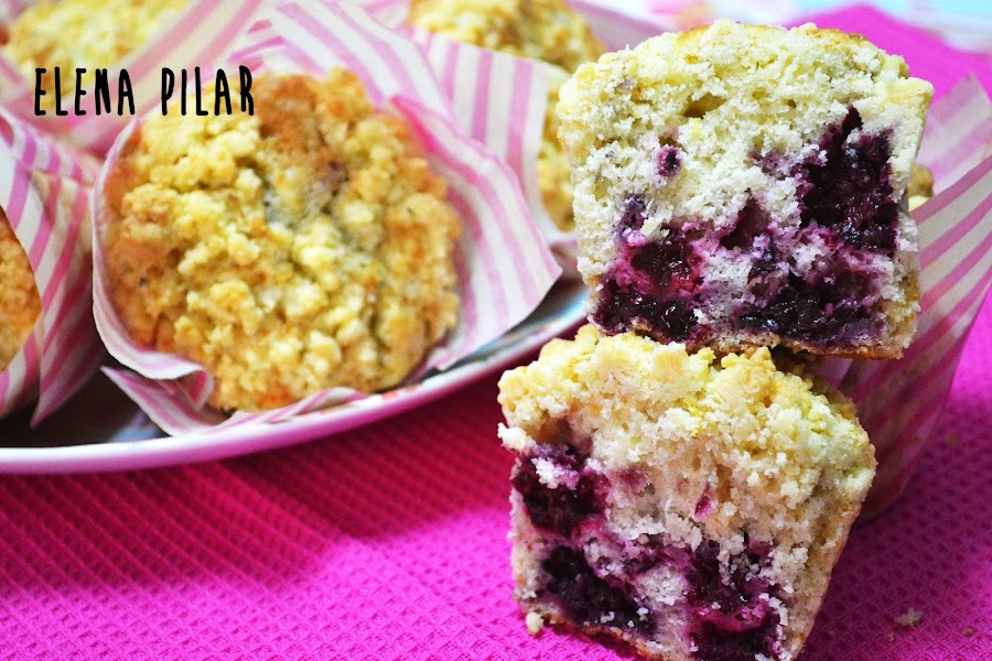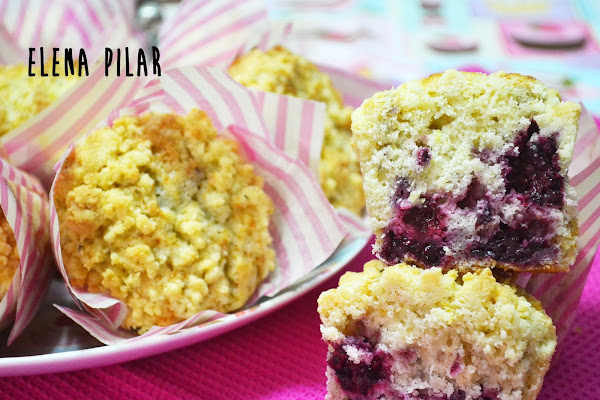 Espero que os gusten. A mí, por lo menos, me encanta este tipo de muffins, bien grandotes, jugosos, rellenos de fruta y con migas de crumble en la superficie.