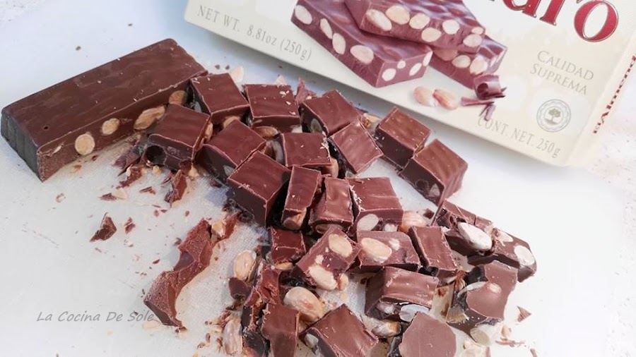 Este turrón lleva cacao de origen africano que se funde con unas almendras de primera calidad. Una buenísima base para conseguir este rico turrón de chocolate con almendras.