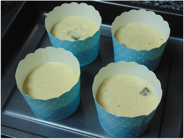 Vamos precalentando el horno a 200 grados mientras distribuimos la masa resultante en los moldes de papel, 2/3 de la capacidad de la cápsula.