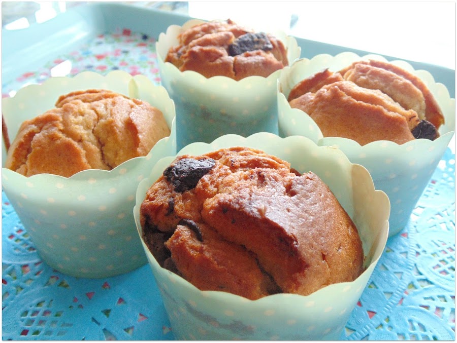 Vuelvo en esta tarde gris de febrero aunque no menos dulce, con una receta ideal para los amantes de la naranja y el chocolate. ¿Os gusta la mezcla de sabores? Esta propuesta os encantará. Son muffins con zumo de naranja y chocolate troceado en su interior!