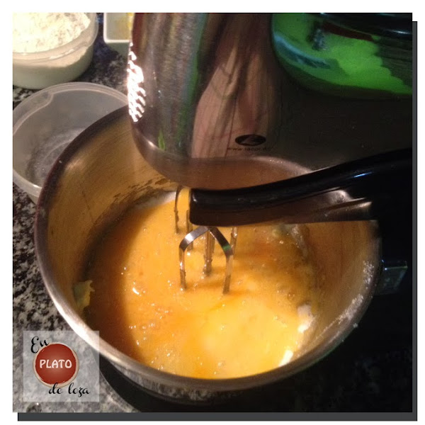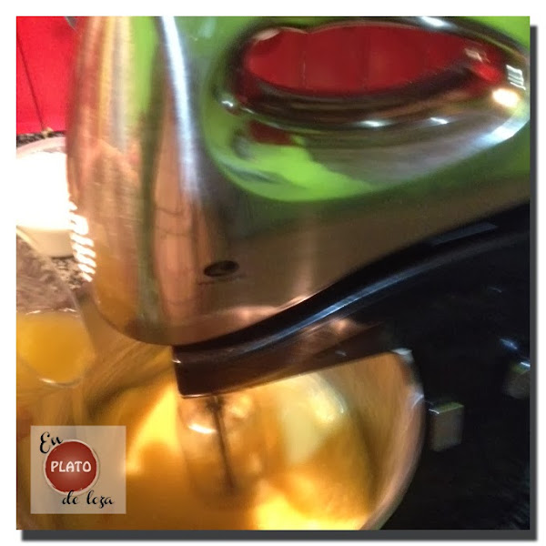 Cuando la hayamos conseguido, incorporamos el zumo poquito a poco y la ralladura de naranja y seguimos batiendo.