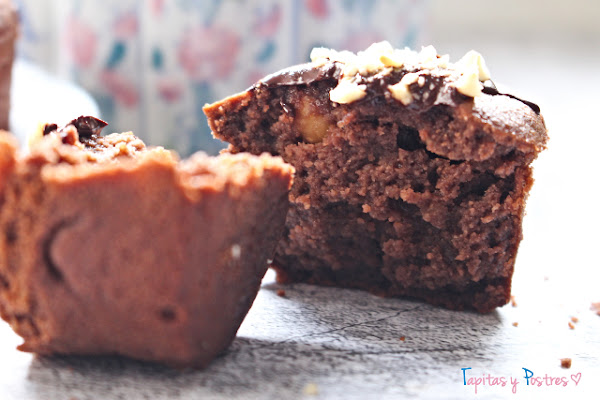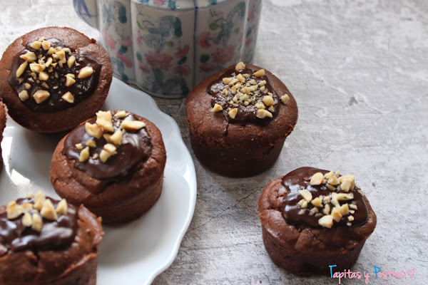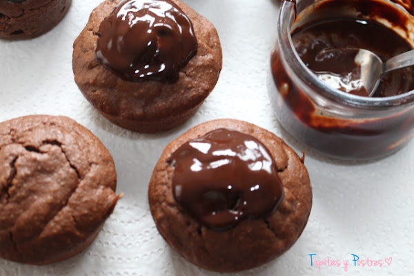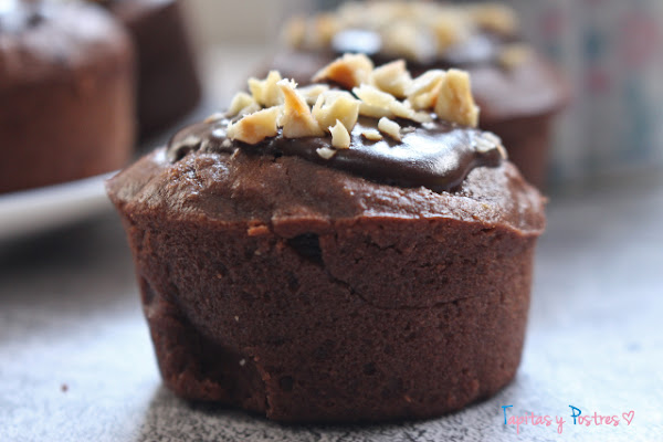 Cuando los muffins estén fríos, ponemos un poquito de chocolate fundido encima y troceamos una avellana y la agregamos.