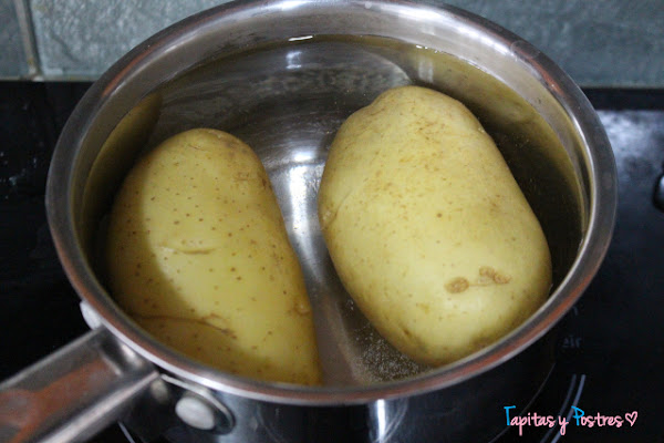 Tenemos que empezar por cocer las patatas en abundante agua hasta que estén tiernas.