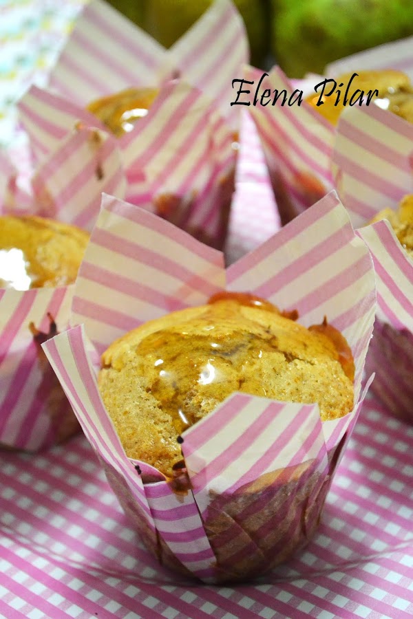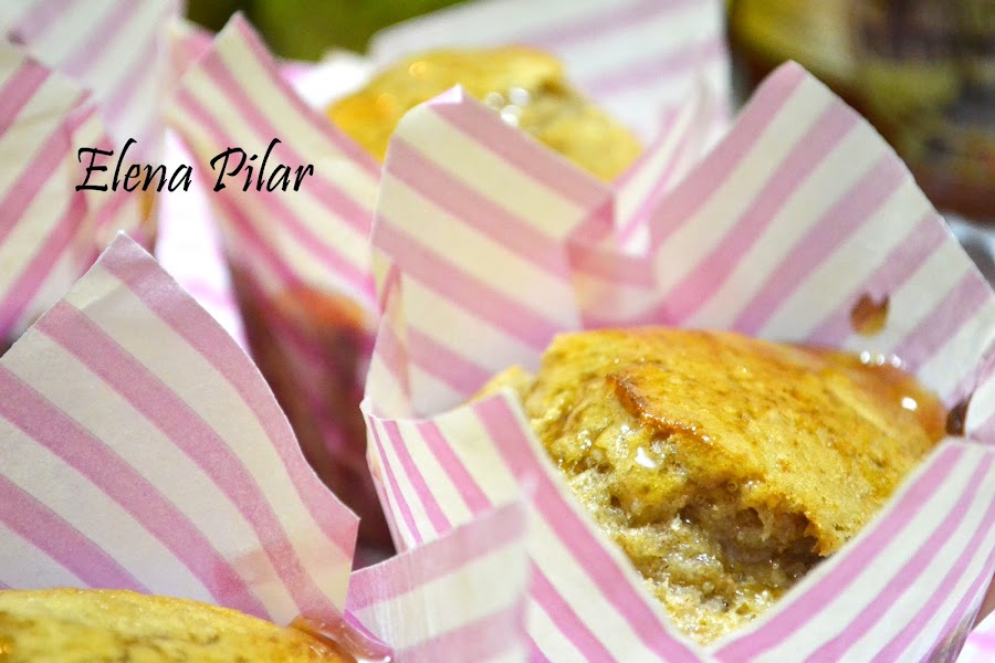 Rellenamos las cápsulas de muffin y horneamos 18-20 minutos a 190ºC. Dejamos enfriar sobre una rejilla y servimos con un poco de miel por encima.