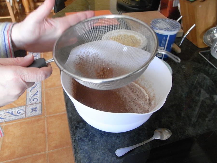Mezclar la harina, el cacao, la sal y la levadura y reservar.