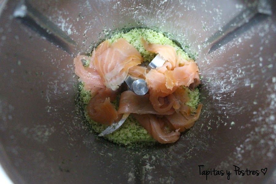 Añadimos el salmón y volvemos a triturar 5 segundos a velocidad 5.