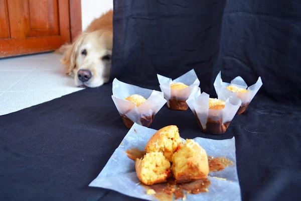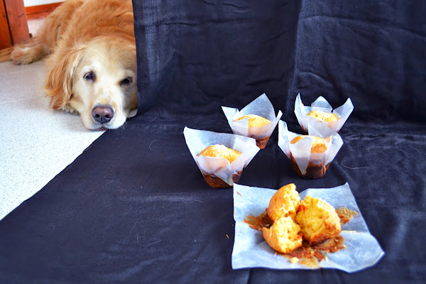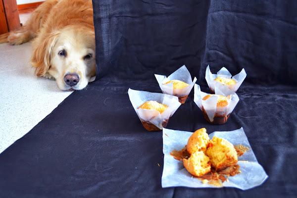 Mi perrito Nacho, ya lo habrán visto en mi Instagram :) pues quería comerse un muffin y se quedó mirándolos un buen rato. Le prometí que le daría uno si me dejaba terminar de fotografiarlos, así que él, muy obediente, se acostó a un lado. Es hermoso.