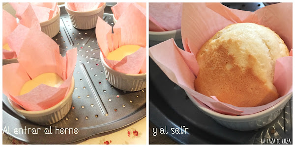 Se pueden rellenar con manga pastelera o echando directamente con la jarra ayudada con una cucharada sopera para con ella, cortar el chorrito de masa y no manchar demasiado los papeles de los moldes. Aquí ya que cada uno que lo haga según su comodidad y práctica.