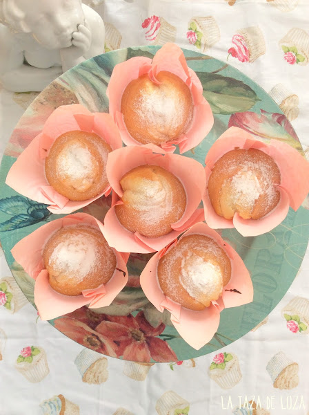 Os cuento que a mitad de horneado y cuando uno se piensa que ya no subirán más empiezan a subir por el centro hasta convertirse casi en un cono. Cuando nos guste el tono de dorado las sacamos y las dejamos enfriar antes de echarles el azúcar o la decoración que se haya decidido. Cuanto más tiempo estén en el horno más secas quedan, así que atención.