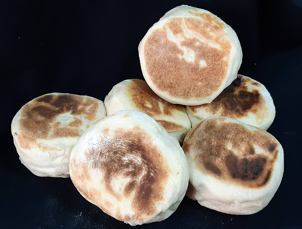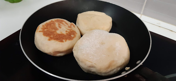 7.- Terminado el levado, iremos colocando los muffins en sartén antiadherente a baja temperatura de 6 a 8 minutos por cada lado y listos.