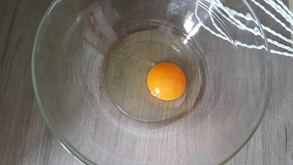 Empezamos batiendo el huevo en un bol amplio y ponemos a calentar el horno a 200ºC.