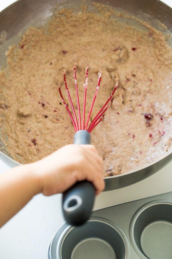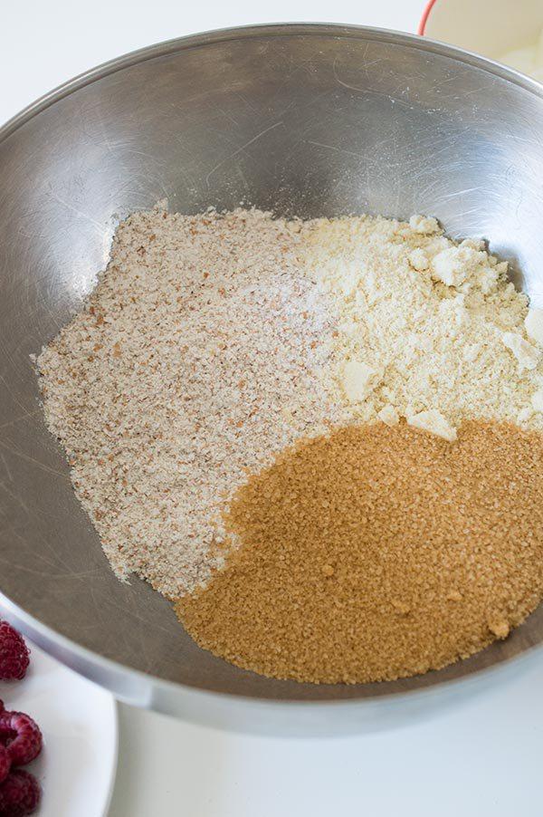 Añadimos también las frambuesas y removemos bien sin miedo a que se rompan un poco.