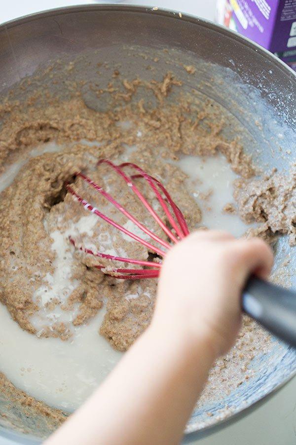 Añadimos un poco de leche vegetal hasta que quede una textura mas cremosa.