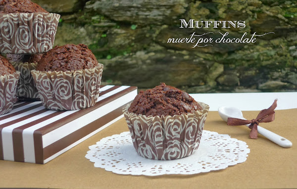 Son varias las recetas que hice, entre ellas el chiffón de naranja que es un pecado de lo suave que es, no nos duró nada porque se come en un vuelo, de verdad parece que estás comiendo una esponja. Otra que nos encantó muchísimo fue el bundt cake muerte por chocolate. Éste nos duró una semanita entera, pero no porque no nos gustara. Normalmente divido las recetas a la mitad porque somos dos y si no duran una eternidad, pero este bundt, no me acuerdo porqué, lo hice del mismo tamaño. Es un pecado húmedo riquísimo y lo mejor es que no pierde con los días. Os aseguro que el quinto día estaba igual de bueno y jugoso como el primero. Incluso el último día, cuando lo acabamos, se comía con placer. Y por eso y porque nos gustó tantísimo, decidí que debíamos morir de nuevo pero en versión adaptada a muffins.