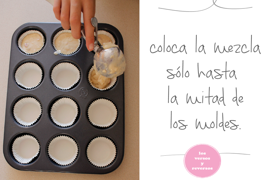 Déjalos en el horno durante 20 a 25 minutos. Prueba si están cocinados, enterrando un palillo en uno de los muffins, si sale limpio es que está listo! Recuerda hacer esto, sin sacar tus muffins del horno.
