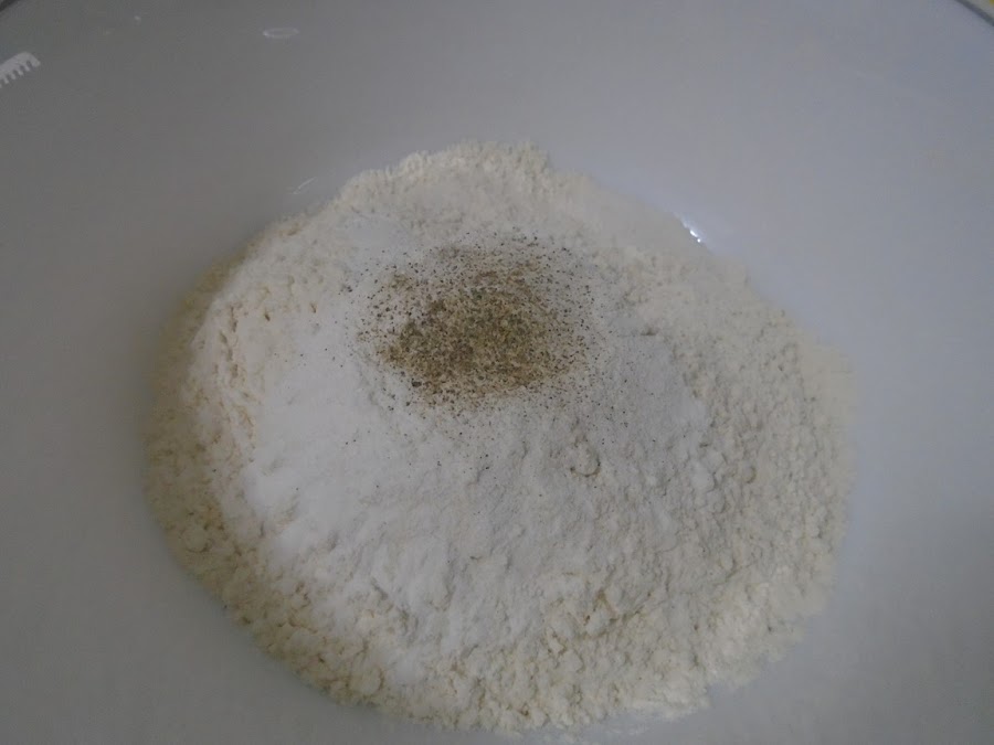 Mezclamos todos los ingredientes secos(harina,levadura,sal y pimienta) en un bowl y reservamos.