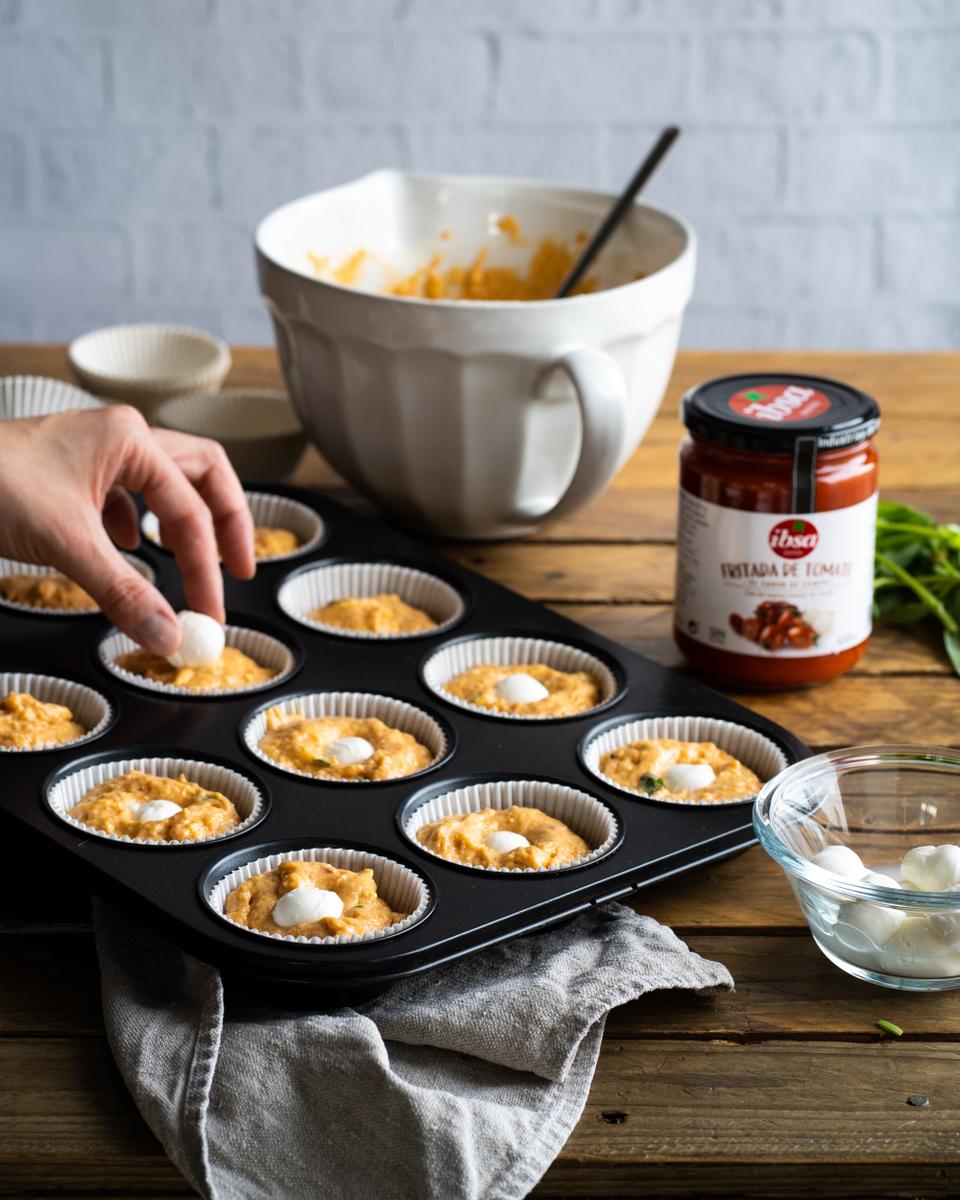 MUFFINS SALADOS DE FRITADA DE TOMATE CON MOZZARELLA (12 uds.):
