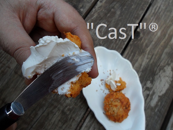 Ponemos en un bol los huevos con el queso de untar y la creme fraiche hasta hacer una pasta bien mezclada.