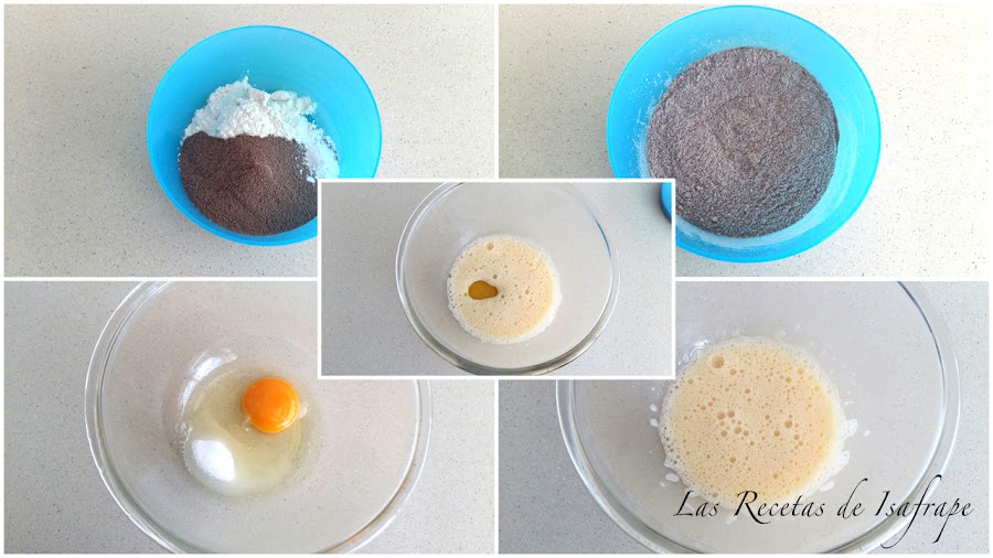 Primero mezclamos la harina, el cacao y la levadura. Reservamos.