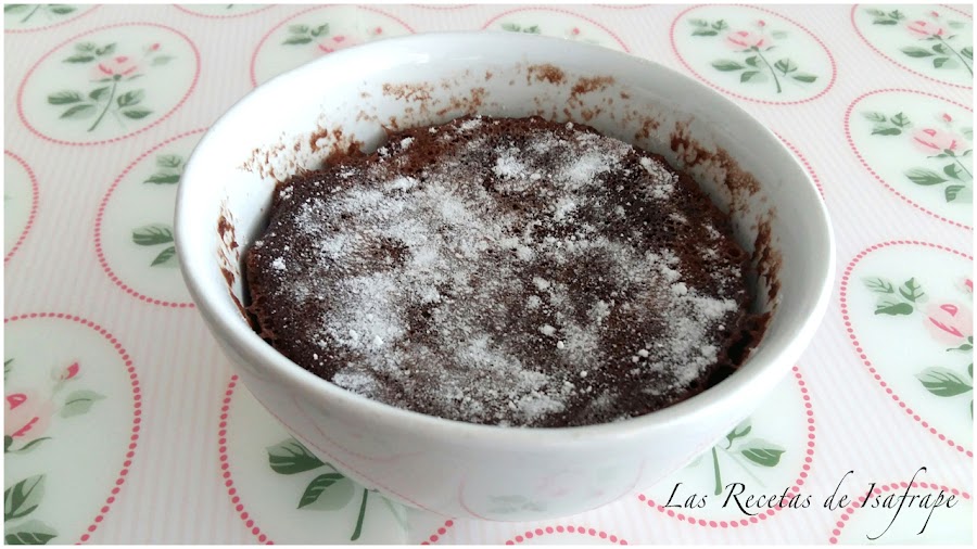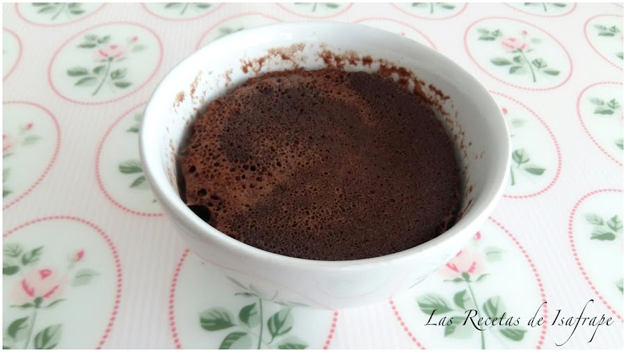Ya tenemos lista la masa, ahora solo queda ponerla en una taza o cuenco apto para microondas y dejamos que se haga, a máxima potencia, entre 2 y 3 minutos. El tiempo dependerá de cada microondas. El mío es de 800 watios y lo tuve dos minutos.