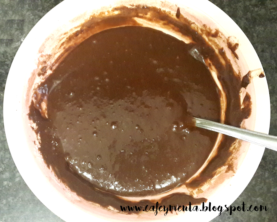 4. Colocamos la mezcla en la taza donde haremos el mug cake. A mí me dió para dos tazas, hay que llenarlo hasta que falten unos 2 o 3 centímetros para llegar al borde, porque luego en el microondas sube mucho.