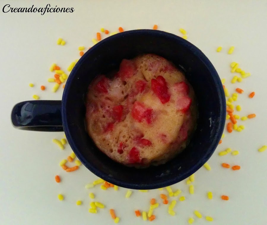 En la misma taza o en un recipiente aparte, añadimos el huevo y el azúcar, mezclamos con un tenedor.