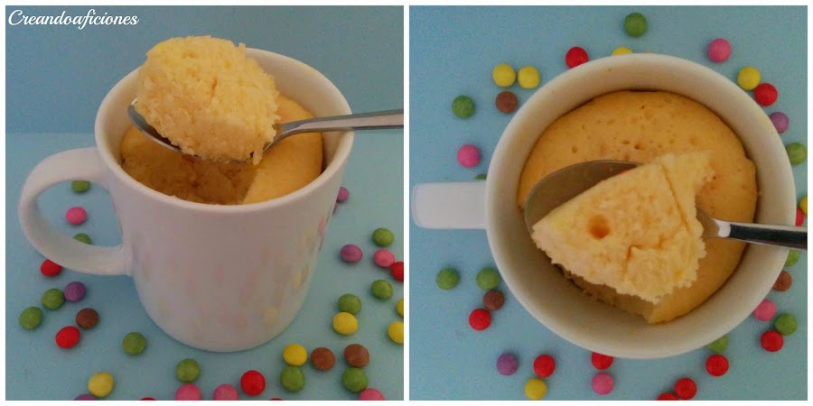 Vuelvo a comentar, que con los tiempos del microondas es mejor quedarse corto, primero poner 1 minuto y ver como esta el bizcocho e ir poniendo de poco a pocos segundos, ya que en minuto y medio o como mucho 2 estará listo, dependiendo del microondas.