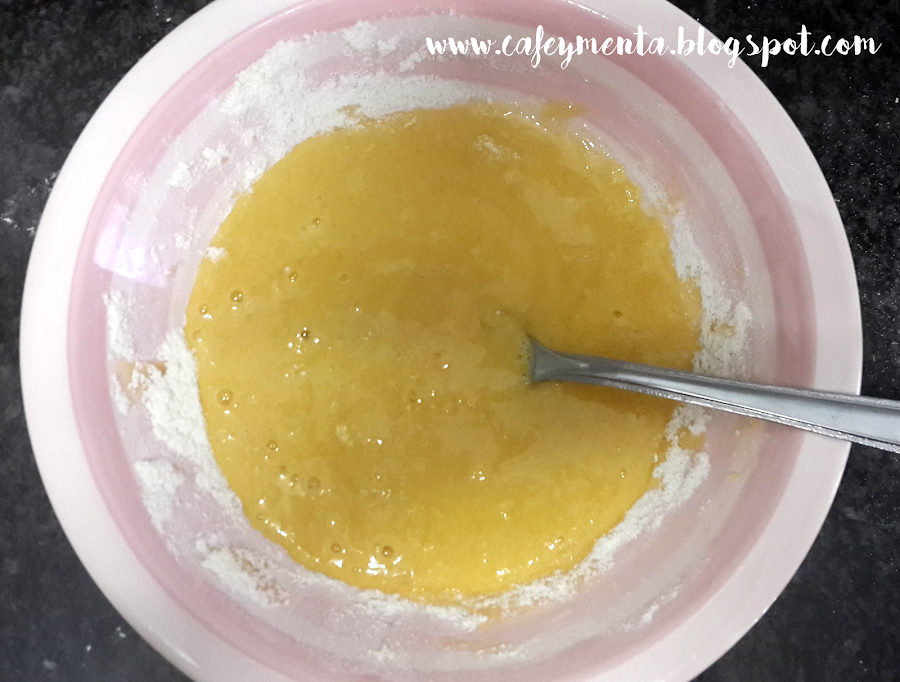 1. En un bol o en la misma taza mezclamos el harina, con el azúcar y la levadura.