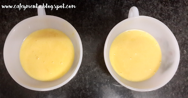 5. Cogemos dos tazas y las llenamos hasta que quede a unos dos centímetros del borde.