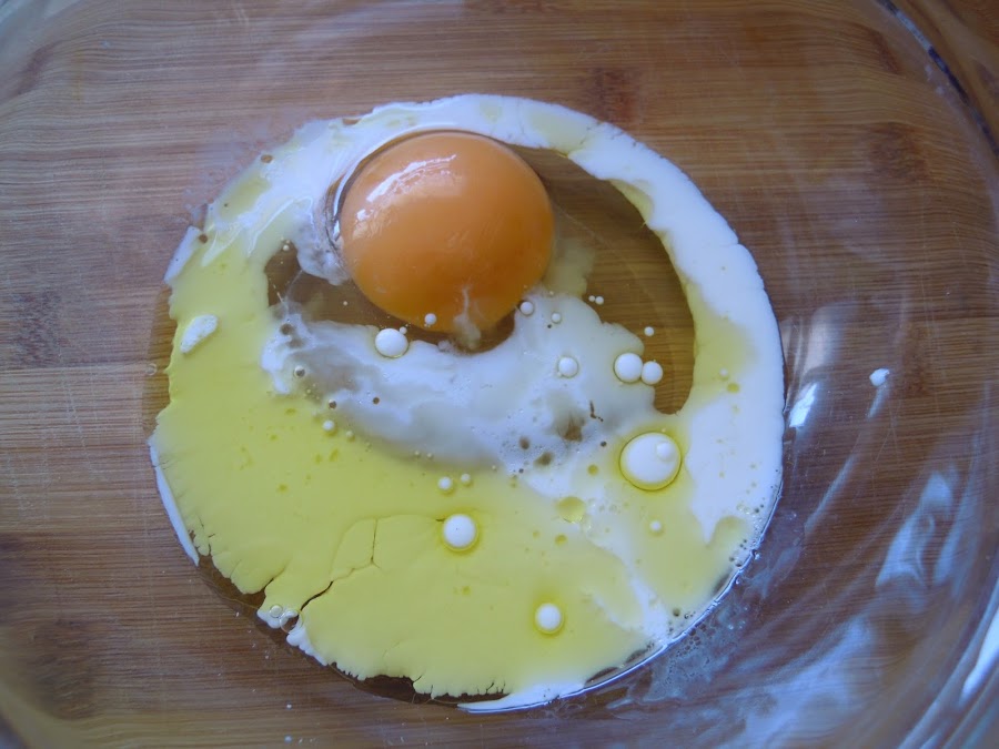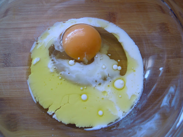 Mezcla en un bol el aceite, la leche y el huevo.