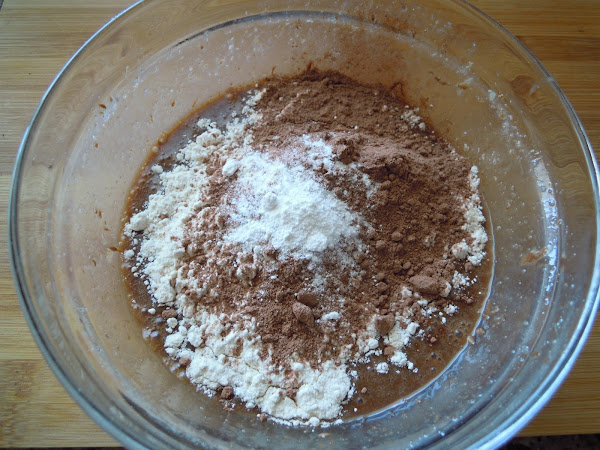 Incorpora el cacao, la levadura y la harina, mezcla bien.