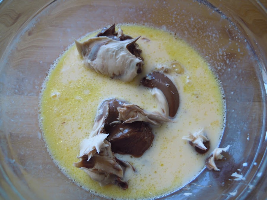 Añade el azúcar y mezcla, luego la Nocilla.