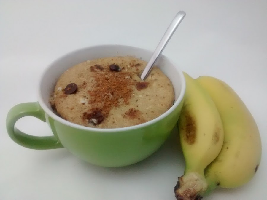 Estas cantidades son para una taza grande. En un bol aplastamos el plátano con un tenedor, muy bien trituradito y añadimos el huevo. Batimos bien. ahora incorporamos el aceite, la miel, la canela y la nuez moscada y mezclamos bien. Añadimos la harina y la levadura y cuando esté todo bien mezclado es el momento de agregar las pepitas de chocolate. Volvemos a mezclar despacito y volcamos a la taza donde cocinaremos el mug cake. Metemos al microondas, 2 minutos, potencia 750º. ¡Y ya está! ¡Cuidado con los vecinos! Seguro que llaman a tu puerta hipnotizados con el buen olor de tu cocina ;)