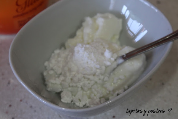 Mientras preparamos el frosting mezclando el azúcar y el queso.