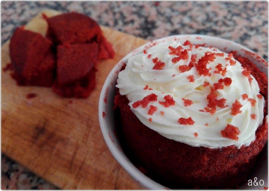 Un bizcocho hecho al microondas, ¿no os lo creéis? Pues aquí lo tenéis. Por los blogs de cocina se conoce como Mug cake red velvet, que viene a significar en inglés, algo así como bizcocho de taza. Ya que se elabora en ella y en apenas unos minutos.