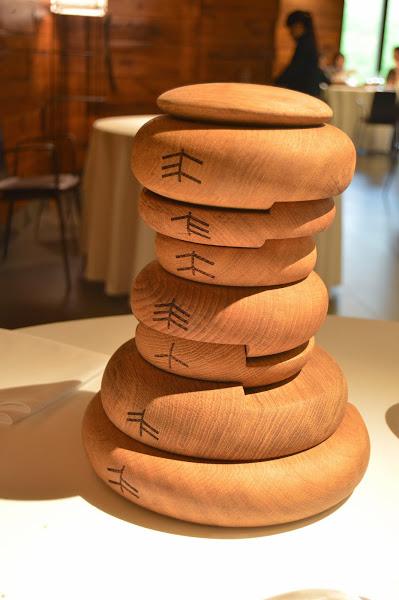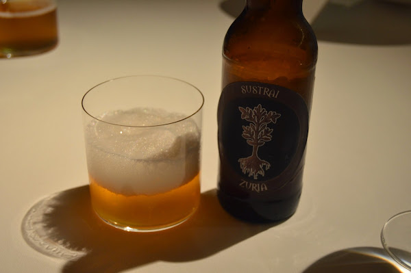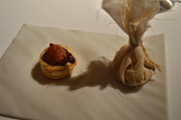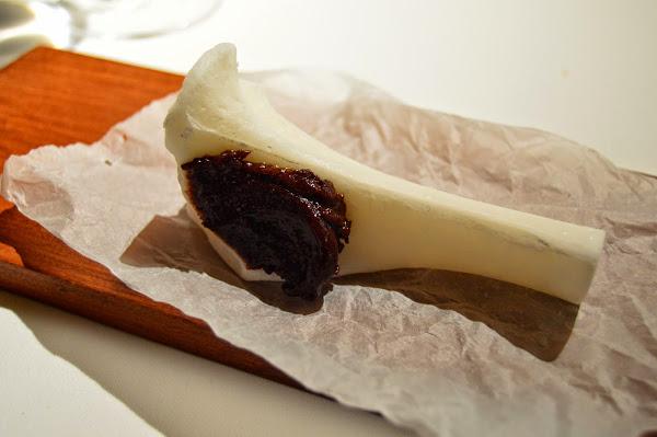 El Queso. No hicimos foto, pero era un trozo de queso que compran en un productor granjero de unos montes cercanos (no recuerdo los nombres) con un pan de pueblo espectacular. Este "plato" servía de prepostre y nexo entre carnes y postres. Fue chocante después de tanta creatividad que nos trajeran esto, pero es como una vuelta a la realidad, la mejor forma de romper el ritmo y preparar el final, ¿que mejor honor al producto que con dos elaboraciones caseras y de la misma zona?