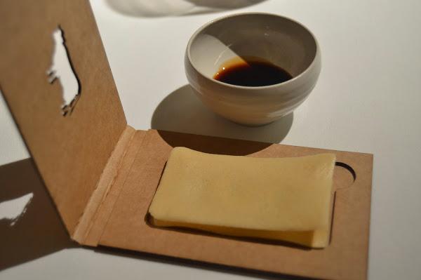 Bovis Máxima: viva la France! Una oda a la ternera en su mayor potencia. Un jugo de carne concentradísimo que había que untar en esa tarjeta comestible, fina y muy ligera.