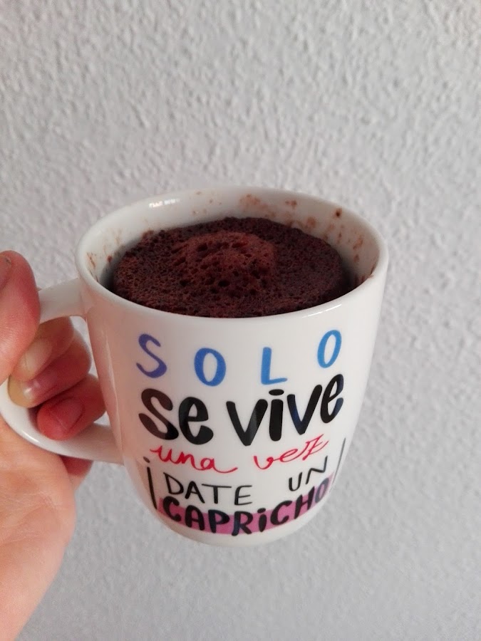 Lo importante es comerse el mugcake en el momento, no podemos dejarlo para el día siguiente ya que se quedará correosa y seca al estar hecho al microondas.