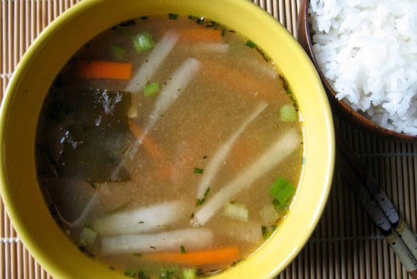 Nota: Esta sopa se puede tomar con las verduras cortadas, hecho puré o colado como caldo. Es importante recordar que el Miso no debe hervir nunca ya que sino perdería sus enzimas.