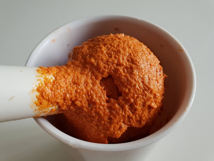 El nombrecito ya sé que se las trae, es sirio, yo lo he rebautizado como hummus de pimientos, porque el resultado es una crema de pimientos para mojar y picotear, como hago con el hummus de garbanzos.