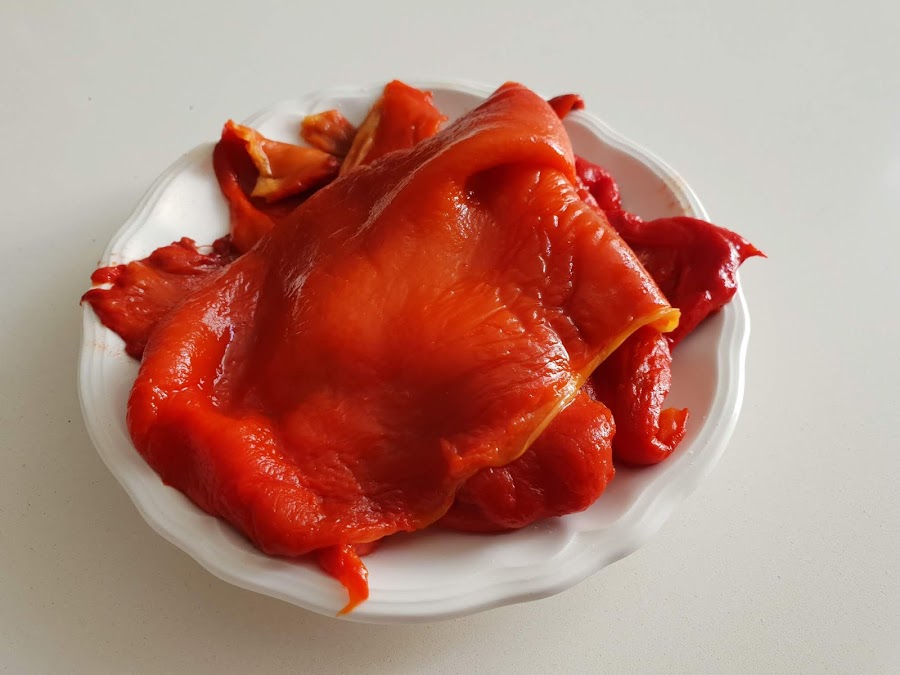 En esta receta, lo más laborioso, por el tiempo que se tarda, es asar los pimientos, peeeero....he descubierto en un supermercado que venden los pimientos asados naturales, que supongo los harán en el horno donde hacen el pan, y los venden ya listos para su uso, así que me he quitado un gran trabajo y tiempo de encima.