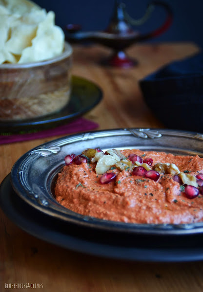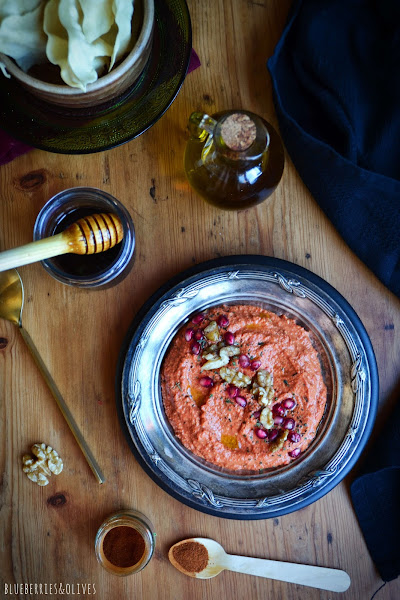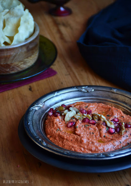 El Muhammara es un plato típico de Siria que consiste en una deliciosa crema picante elaborada con pimientos rojos asados, nueces y granada. Está muy presente en las mesas servido como "mezze" es decir como aperitivo o entrante. Es perfecta como picoteo saludable para dippear o untar, a mi me encanta para mojar papadoums o pan de pita tostado... Tradicionalmente se elabora machacando los ingredientes en un mortero pero lo haremos más rápido usando batidora.Se puede conservar durante varios días en la nevera, es más, está más rico y sabroso el día después de prepararlo y lo ideal es servirlo a temperatura ambiente.